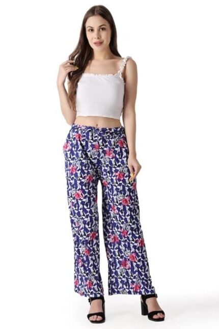 Women Floral Design Printed Stylish Rayon Regular Fit Palazzo Pant Bottom for Girls,
