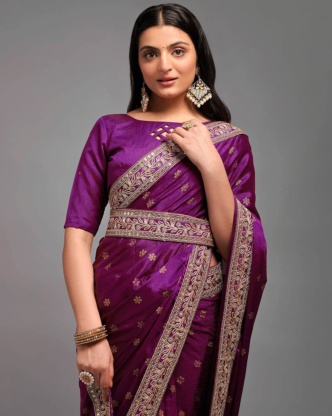 - The last image gives a detailed look of the blouse piece that comes with this saree (The model is wearing a blouse from our in-house wardrobe)