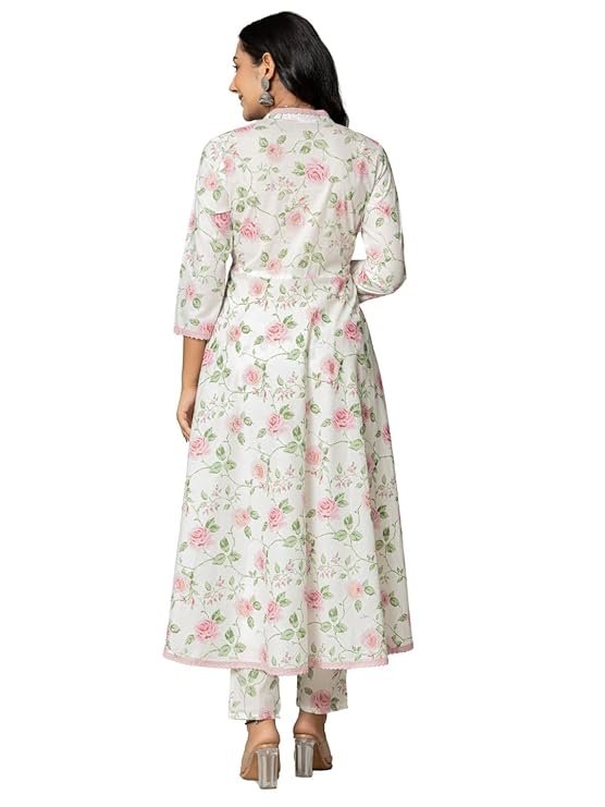 Women’s Cotton Printed Anarkali Kurta with Palazzo Pants and Dupatta