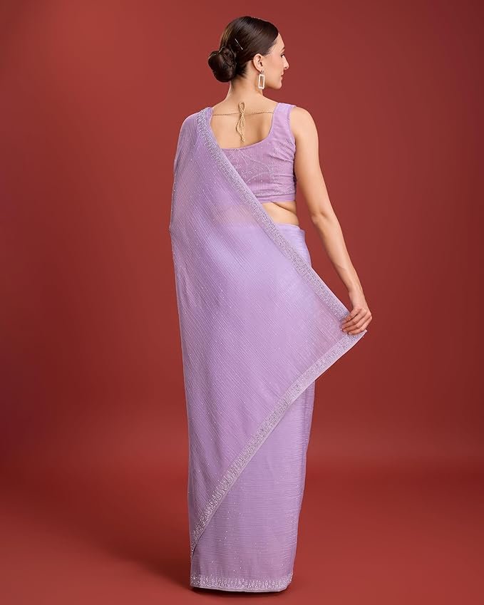 Women’s Dazzling Divinity Crush Organza Saree Swarovski Stone Work Comes With Unstitched Blouse Piece