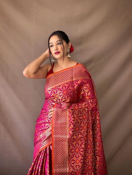 Women’s Kanjivaram patola Soft Lichi Silk Sarees With Unstitched Blouse Piece